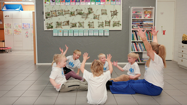 Koppakuoriainen -runoleikissä tutkitaan ja mitä kaikkea koppakuoriaisasennossa voi tehdä sekä harjoitellaan kehon ja liikkeen hahmottamista.