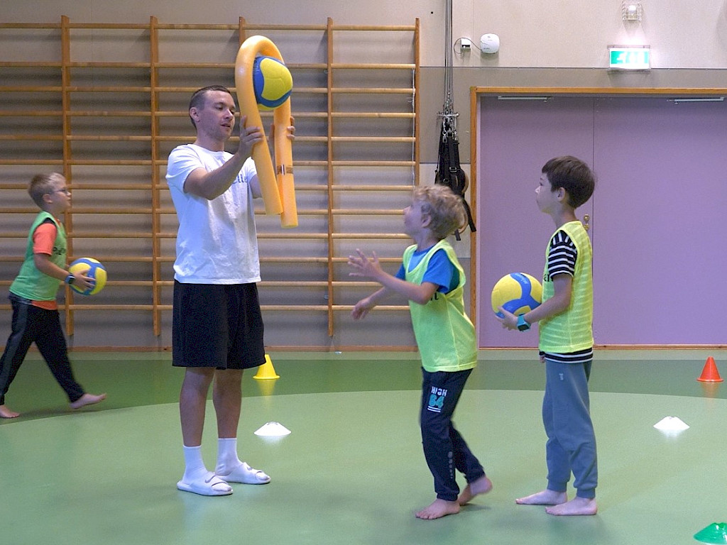 - Aikuinen heittää palloa eri suuntia hyödyntäen.